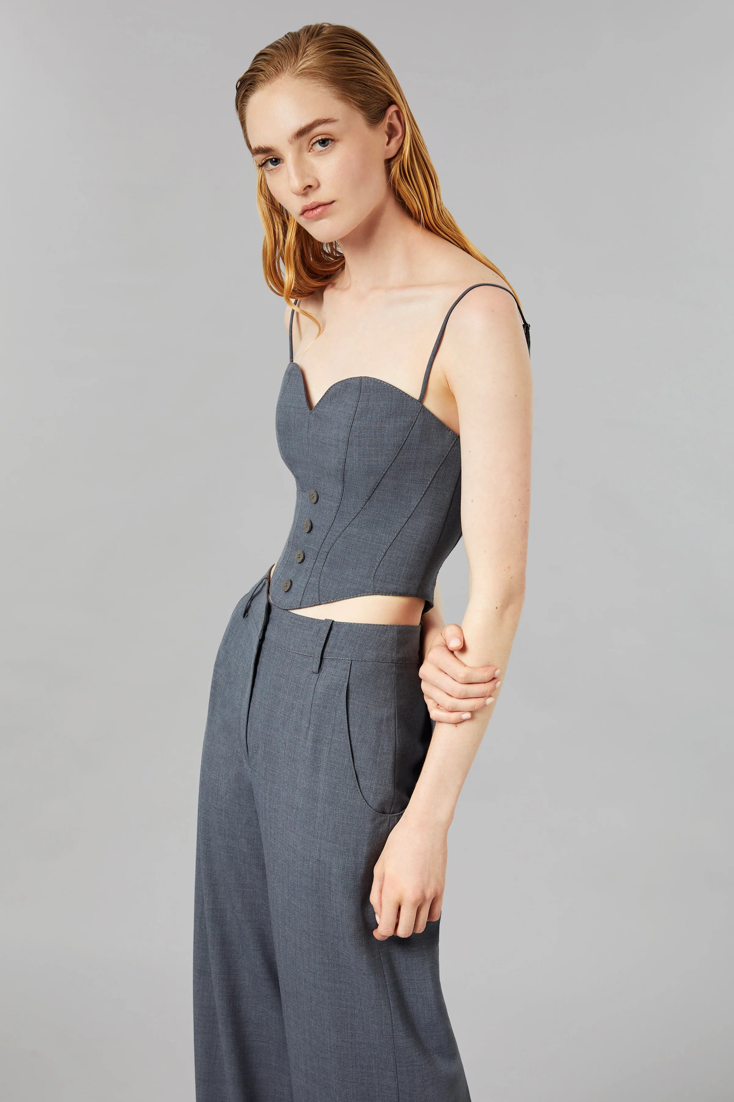 Spring and Summer 24 collection is the beginning of exploring relationships between tailoring techniques and contemporary aesthetics. Wàngda engineered the traditional corset into a comfortably tailored garment, 16 pieces of wool into one piece of clothing.