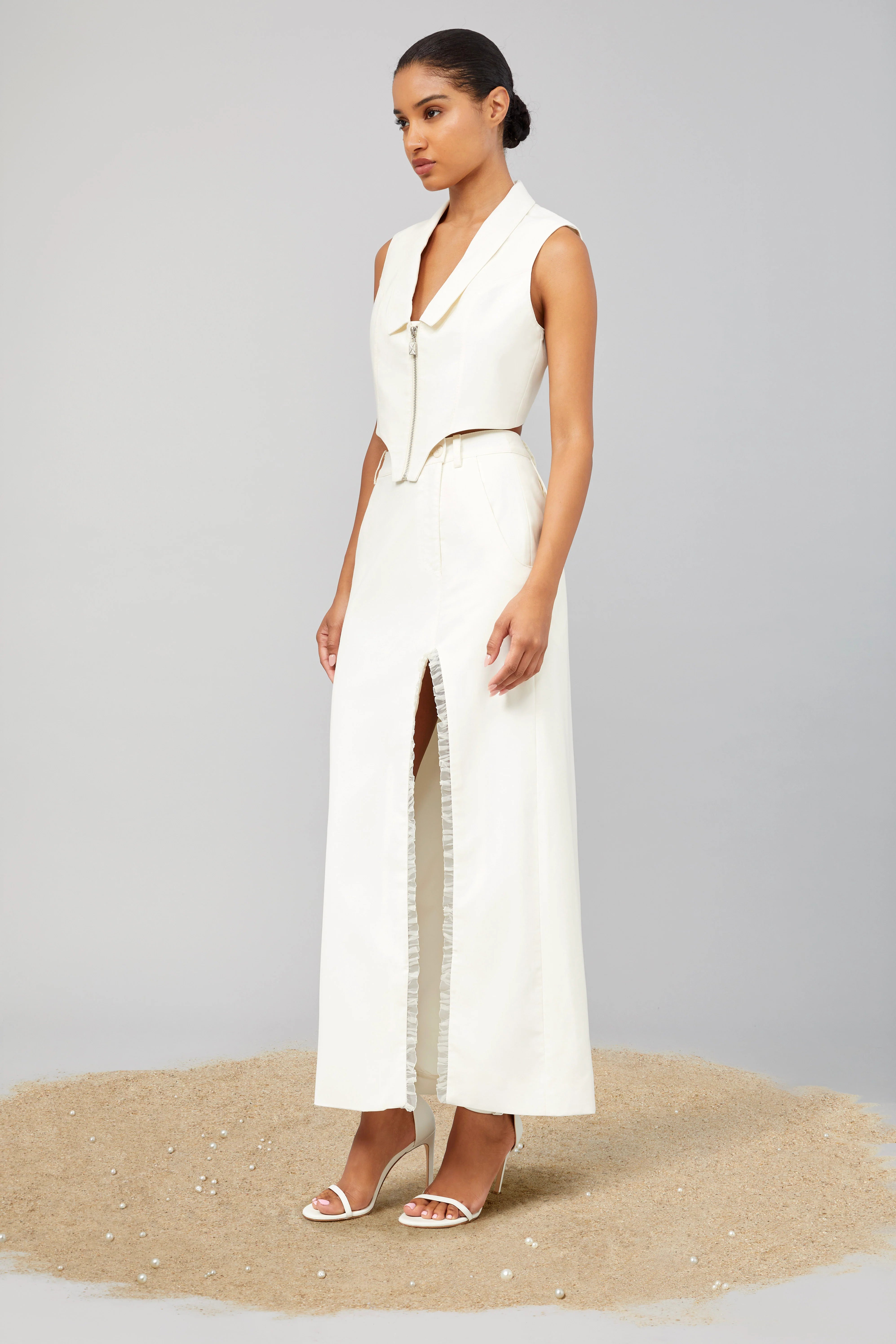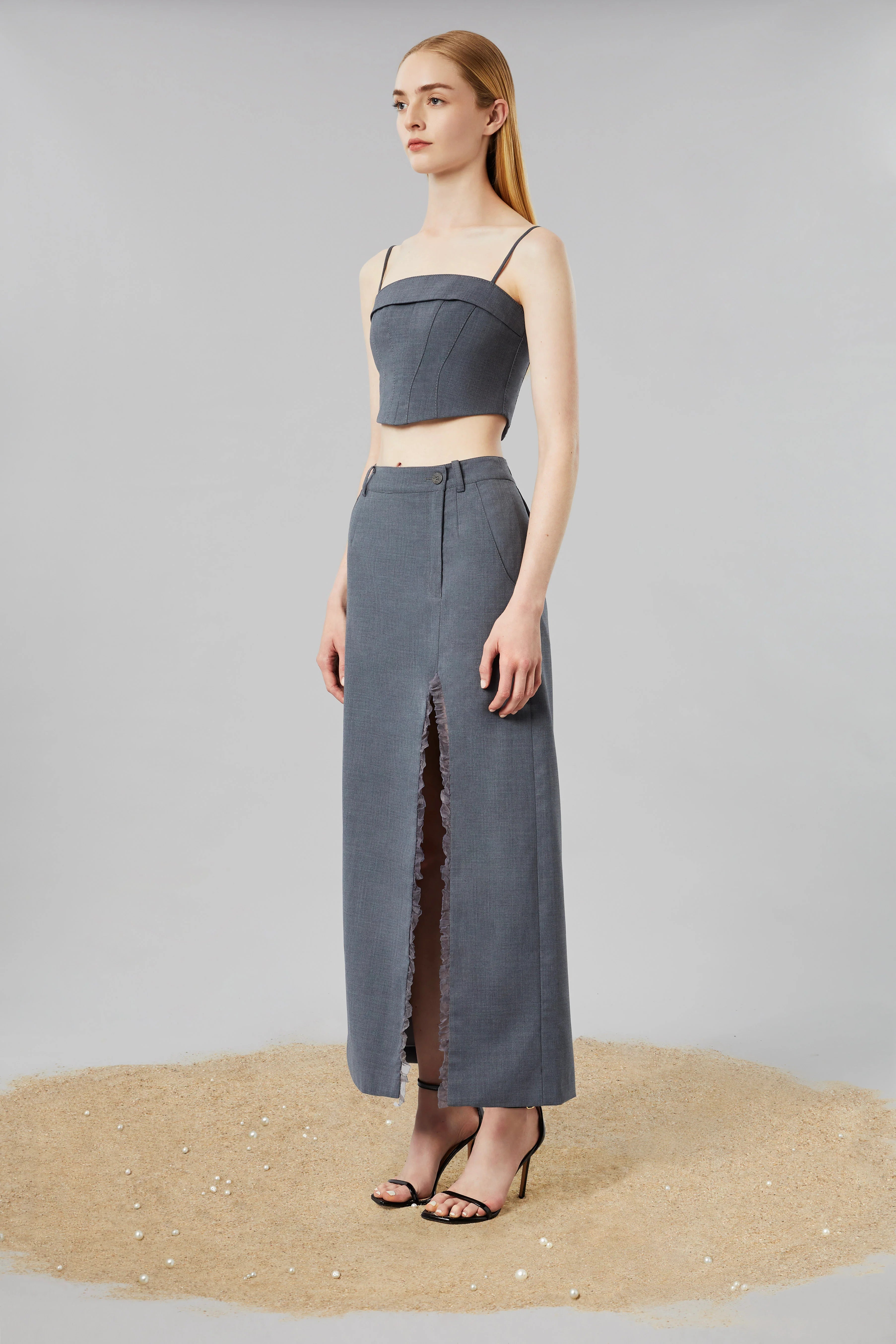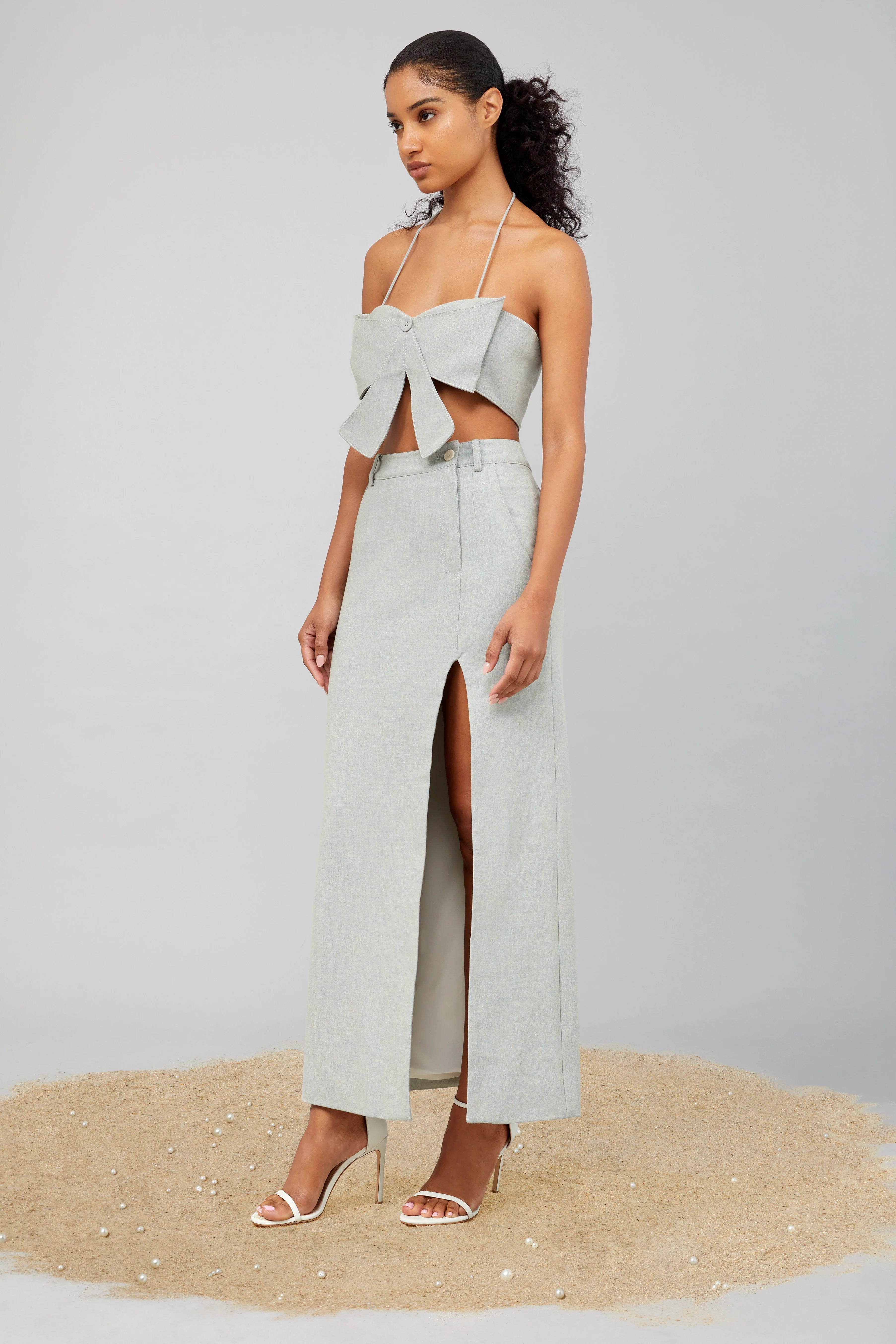Every piece was made to celebrate the moment of being loved, understood, and supported by his mother in China. Celebrating the female influence in his life through combining minimalist tailoring, highlighting feminine form, and conveying power in a gentle yet masculine way.